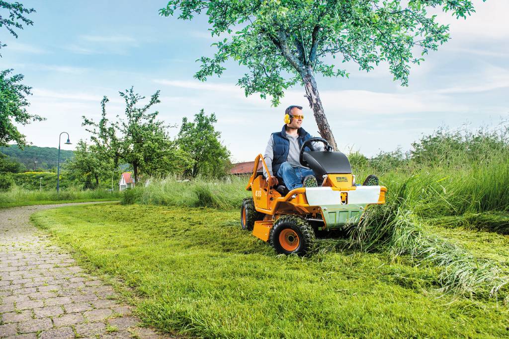 Με μια πρώτη ματιά, παρατηρείτε τον γαλβανισμένο προφυλακτήρα, με τον οποίο από την άνοιξη του 2019 όλα τα αναβάτη πολυκόπτες της AS-Motor θα είναι εξοπλισμένα. Πέρα από την οπτική αναγνωρισιμότητα, ο σταθερός προφυλακτήρας στο μπροστινό μέρος του πολυκόπτη προστατεύει επίσης από το χόρτο και τους θάμνους που πάντα χτυπούν τη συσκευή κατά το κούρεμα. Ως αναβάτης πολυκόπτης, ο AS 915 Sherpa 2WD συνδυάζει την άνεση και τον ρυθμό εργασίας ενός πολυκόπτη με την δύναμη κοπής και την ικανότητα όλων των εδαφών των γνωστών αναβάτη πολυκόπτες από την AS-Motor. Με μια ταχύτητα μέχρι 10,5 km/h προς τα εμπρός και μέχρι 8,2 km/h προς τα πίσω, ο αναβάτης πολυκόπτης επιτυγχάνει έναν ρυθμό εργασίας περίπου 9.450 τετραγωνικά μέτρα ανά ώρα.