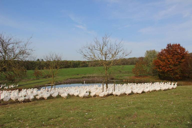 Με τα χρόνια, το αγρόκτημα έχει εξελιχθεί σε μια εντυπωσιακή επιχείρηση. Περιλαμβάνει τώρα ένα κτίριο κατοικίας, ένα σφαγείο, ένα κρεοπωλείο, ένα κατάστημα αγροτικών προϊόντων, θερμοκήπια, καλλιέργεια λαχανικών και φρούτων και πολλά στάβλους. Σύνολο 40 προσωπικό πλήρους απασχόλησης και 170 εποπτευόμενοι υπάλληλοι εργάζονται τώρα στο αγρόκτημα και διαχειρίζονται περίπου 200 εκτάρια λιβαδιών, καλλιεργήσιμης γης και οπωρώνων. "Με εξαίρεση τις κατσίκες, έχουμε σχεδόν όλα τα είδη κτηνοτροφίας στο αγρόκτημα", λέει ο αγρονόμος με υπερηφάνεια και αρχίζει να απαριθμεί: "Το κοπάδι των Limousin γαλακτοπαραγωγών αγελάδων αποτελείται τώρα από 60 γαλακτοπαραγωγές αγελάδες με απόγονο, κρατάμε τα 250 χοίρους εκτροφής σε ένα στάβλο με ανοιχτό μέτωπο και στρώμα από άχυρο, και λίγο πάνω από τα εδάφη έχουμε άλογα Kunig, τα οποία χρησιμοποιούνται κυρίως για τη συντήρηση του τοπίου. Επιπλέον, υπάρχουν 150 πρόβατα της φυλής Schwarzkopf και 600 γαλοπούλες, καθώς και 600 χήνες εποχιακά. Στο τομέα της πουλερικής, ωστόσο, το πιο σημαντικό προϊόν μας είναι το φρέσκο κρέας κοτόπουλου, το οποίο σφάζουμε στο δικό μας σφαγείο πουλερικών. Έχουμε τώρα περίπου 3500 κοτόπουλα, αλλά τώρα είμαστε στη διαδικασία κατασκευής ενός στάβλου με χωρητικότητα για 9000 κοτόπουλα."