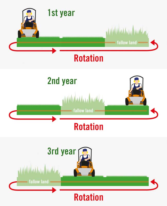- Δημιουργία περιστροφικής ακαλλιέργητης γης ή αφήστε τις παλαιές λωρίδες χόρτου ανεπηρέαστες