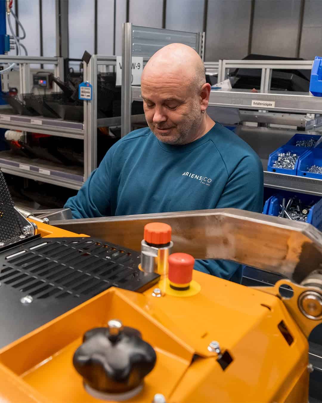 Η νέα εργατική ενδυμασία δεν επιλέχθηκε από έναν κατάλογο. Σχεδιάστηκε από την αρχή – από εμάς, για εμάς. Η διαδικασία ανάπτυξης ήταν πρακτική και συνεργατική, με ανατροφοδότηση και συνεδρίες δοκιμής που πραγματοποιήθηκαν σε ομάδες και τμήματα. Κάθε λεπτομέρεια δοκιμάστηκε και βελτιώθηκε. Κόψιμο, υφάσματα, πρακτικά χαρακτηριστικά – τίποτα δεν αφήθηκε στην τύχη. Η προσπάθεια ηγήθηκε ο Marc Schilling, Team Lead Marketing στην AriensCo EMEAA, ο οποίος συνεργάστηκε στενά με την ομάδα στο Clothing Network, τον μακροχρόνιο συνεργάτη μας για λύσεις υφασμάτων.