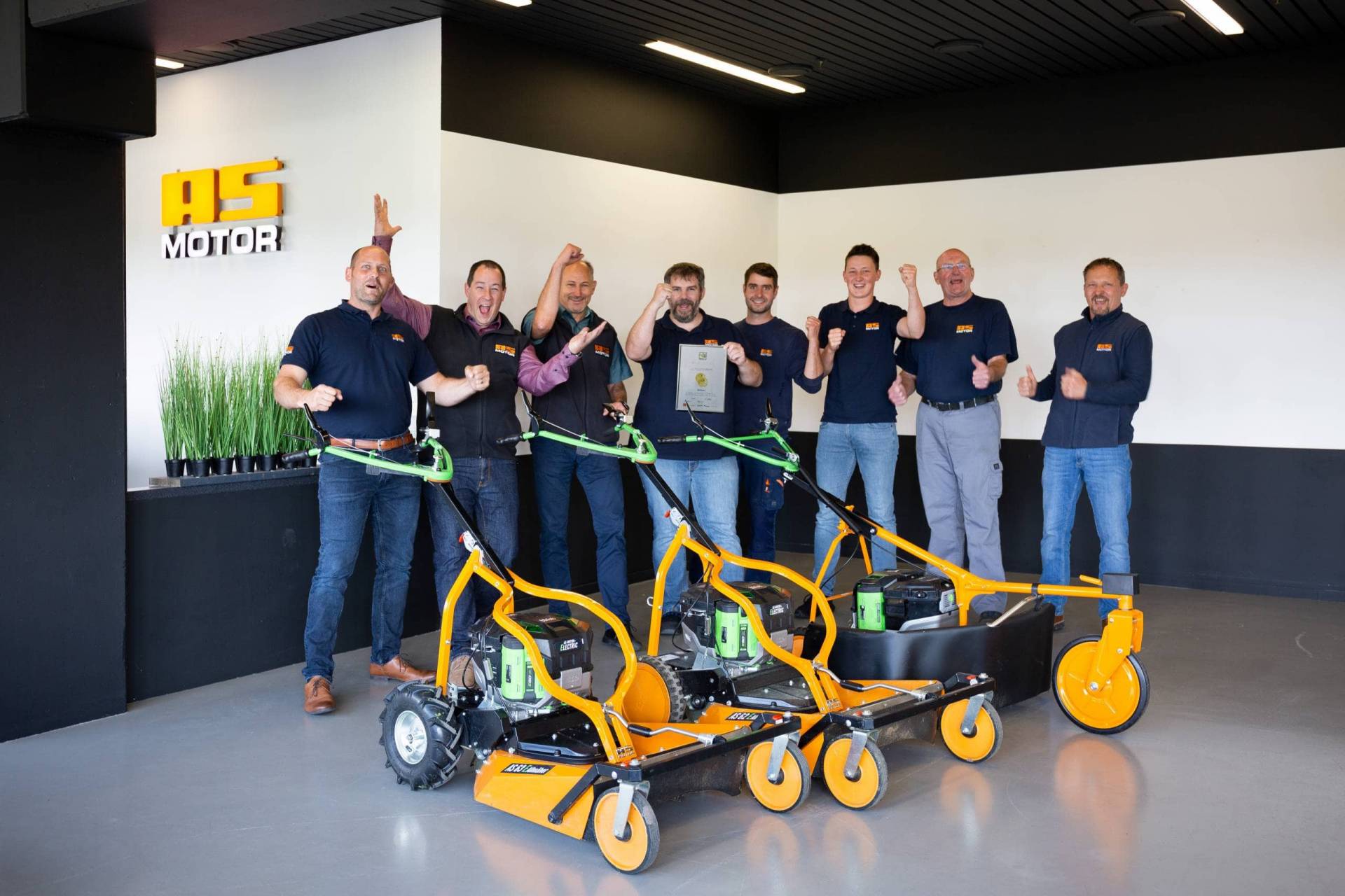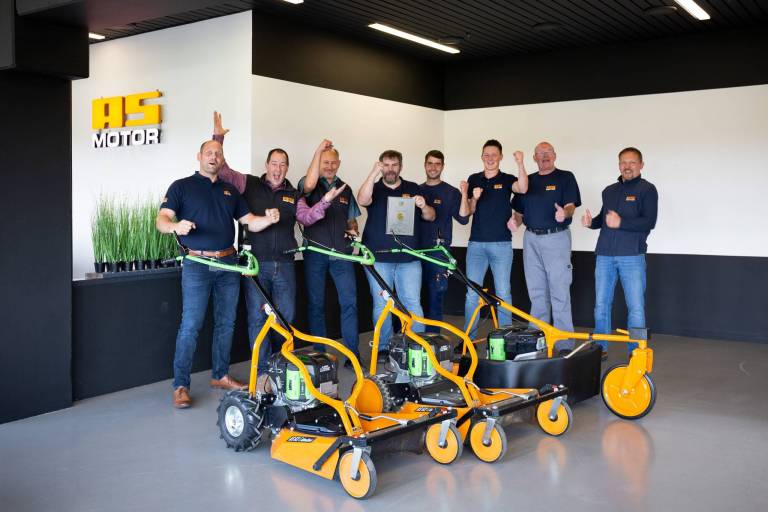 Στα αρχικά του Ιουνίου φέτος, η AS-Motor παρουσίασε τους πρώτους ηλεκτρικά κινούμενους κοπτήρες υψηλού χόρτου: τους AS E-Allmäher. Με συνέπεια και επιμονή, η ομάδα ανάπτυξης του ειδικού σε υψηλό χόρτο είχε ακολουθήσει τις δυνατότητες εναλλακτικών, ηλεκτρικών κινητήρων για την σειρά προϊόντων Allmäher και ήξερε ότι ο καιρός για επαγγελματικούς κοπτήρες με μπαταρία είναι πλέον ώριμος. Η ειδική κριτική επιτροπή του διαγωνισμού καινοτομιών demopark επίσης πείστηκε από τους νέους επαγγελματικούς κοπτήρες με μπαταρία και απένεμε στο ηλεκτρικό Allmäher ένα χρυσό μετάλλιο.