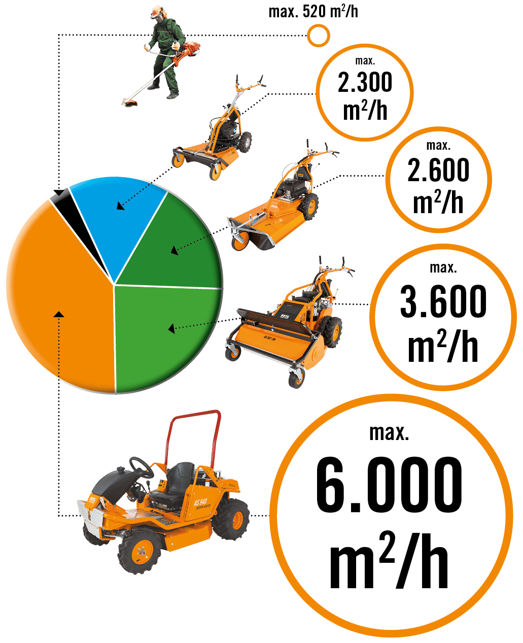 Σε σύγκριση με άλλα ξυλοκόπτικα ή μηχανήματα κοπής υψηλού χόρτου, το Sherpa RC έχει μια εντυπωσιακή απόδοση επιφάνειας έως και 6000 m²/h.