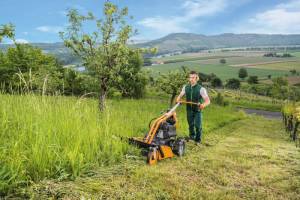 Work rates reaching 2,400 m² per hour are possible due to a high-performance 2-stroke engine with up to 6.7 hp, variable drive and a 61 cm cutting width. The AS 63 2T ES easily cuts grass up to 100 cm high.