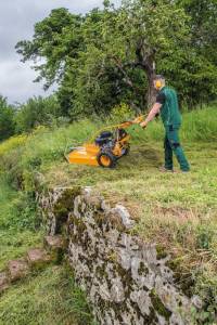 Remote controlled devices make the mowing of extreme slopes possible. This technology also allows the operator to mow at a safe distance from dust, wasps, ticks and other hazards. -