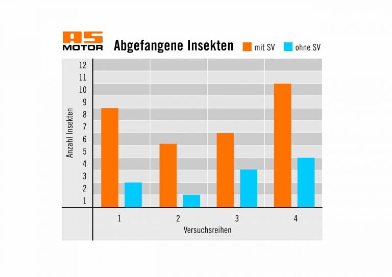In cooperation with the Institute of Agricultural Engineering at the University of Hohenheim, various trials were carried out which, among other things, confirmed the benefits of the insect scare device. The trials were carried out with an AS 63 rotary brush-mower as the carrier vehicle. In order to ensure that the results are robust, comparative runs were carried out with and without the insect scare device in several repetitions. The number of insects flushed out was determined by means of a catch basket attached to the device. The result clearly shows the benefit of the device. During the trials, about three times as many insects were flushed out with the insect scare device (compared to the trials without the scaring device) and thus moved out of the danger zone of the mower. Further trials with dummy insects suggest that the survival rate of insects can be further increased by using single bladed mowers in combination with an increased cutting height. Simple in design but effective in protecting insects.