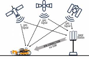The inaccuracy of the GPS signal is corrected to within a few centimetres using RTK correction data from fixed base stations.