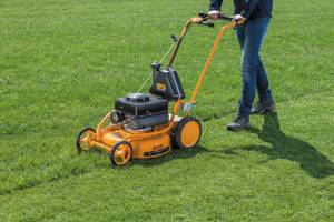 Τροχοί με διπλή υποστήριξη ρουλεμάν, που τρέχουν ομαλά και πιέζουν πολύ λίγο το χόρτο.