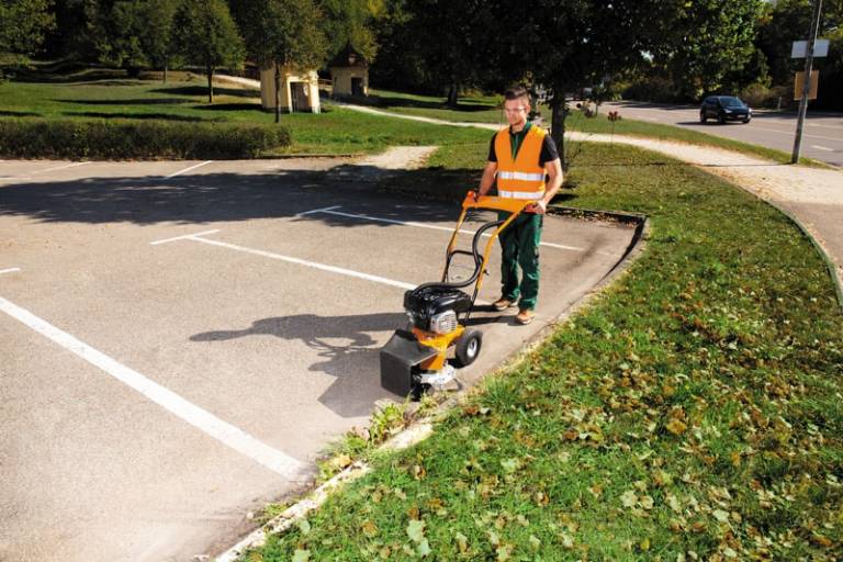 The AS 50’s high work rate delivers efficient weed removal on large and uneven surfaces such as a car parks, commercial areas and paths. A collection bag eliminates the need for sweeping and surface cleaning. -