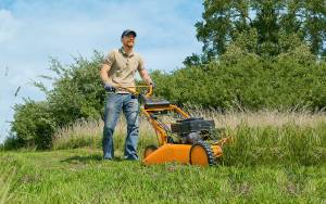 Drive speed can be conveniently adjusted to suit the conditions using the variator, and the AS 53 2T ES 4WD RB comes with a reverse gear. Cutting heights can be adjusted from 30–100 mm via six levels on each axle. Work rates reaching 2,500 m² per hour are possible due to a powerful 2-stroke engine with up to 6.0 hp and a 53 cm cutting width. The AS 53 2T ES 4WD RB easily cuts grass up to 40 cm high.