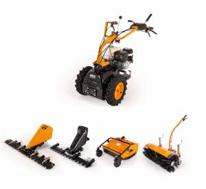 Το τιμόνι τύπου V, είναι ειδικά κατασκευασμένο από την AS-Motor: Το αριστερό χειριστήριο ρυθμίζει την ταχύτητα από 3.0–4.5 km/h καθώς το μηχάνημα κινείται. Το δεξί χειρστήριο ενεργοποιεί το συμπλέκτη μαχαιριού, την κίνηση και το χειρόφρενο.  Το τιμόνι χειριστή έχει την ειδική ενίσχυση»VibrationProtect» που μειώνει τις δονήσεις στον χειριστή στο ελάχιστο. Επιπρόσθετα, η ιδανική κατανομή βάρους διασφαλίζει την εργονομία και την εργασία χωρίς κούραση.
