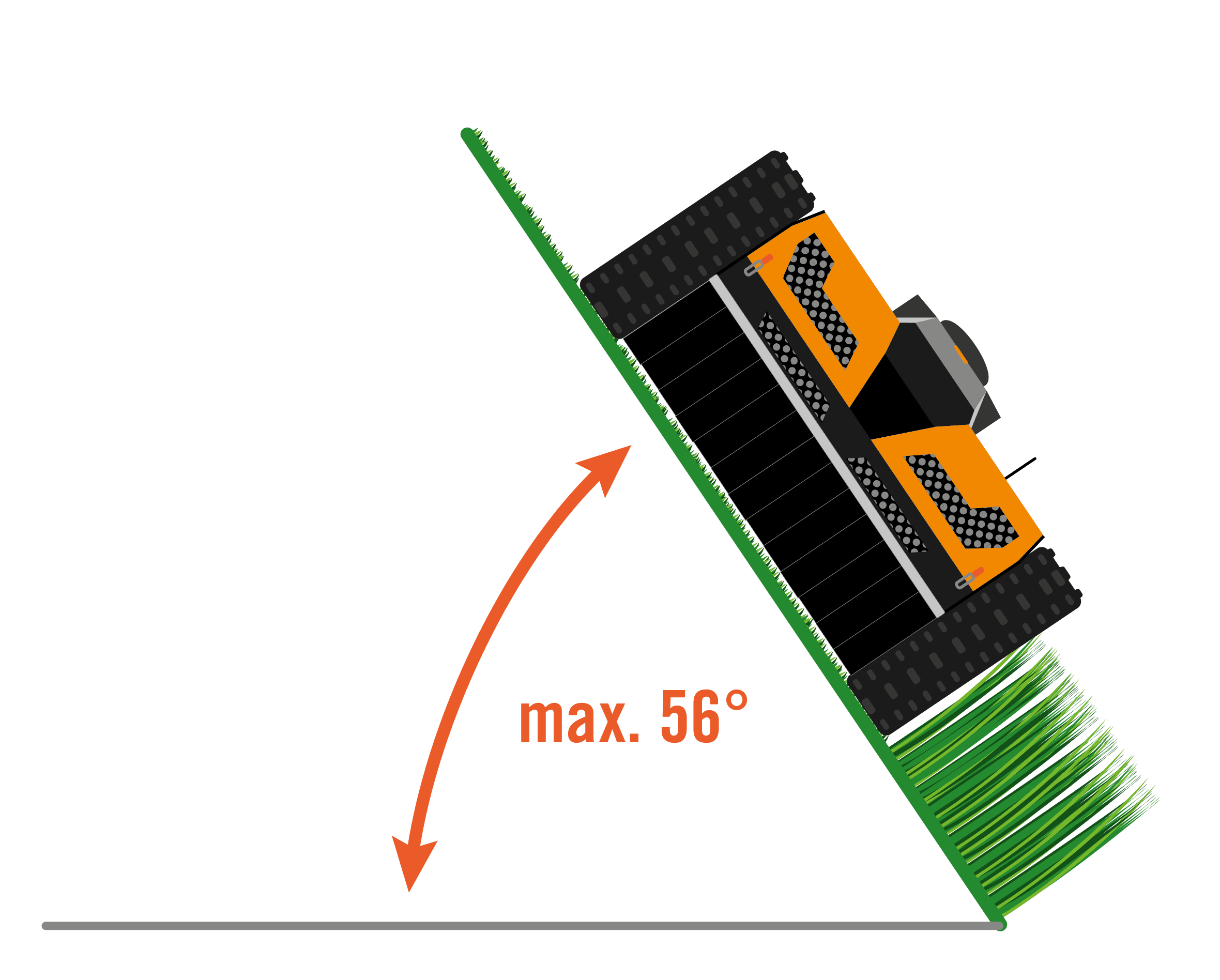 Engineered for maximum output and total control, this remote-controlled high grass mower with hydrostatic crawler tracks delivers high-performance cutting on slopes up to 56° (119%). Thanks to its open rotary mower deck and bi-directional cutting system, there’s no need to turn after each pass.
