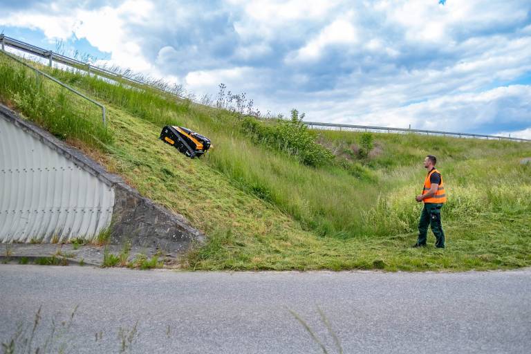Remote mowing enhances both operator safety and productivity — especially on difficult terrain.