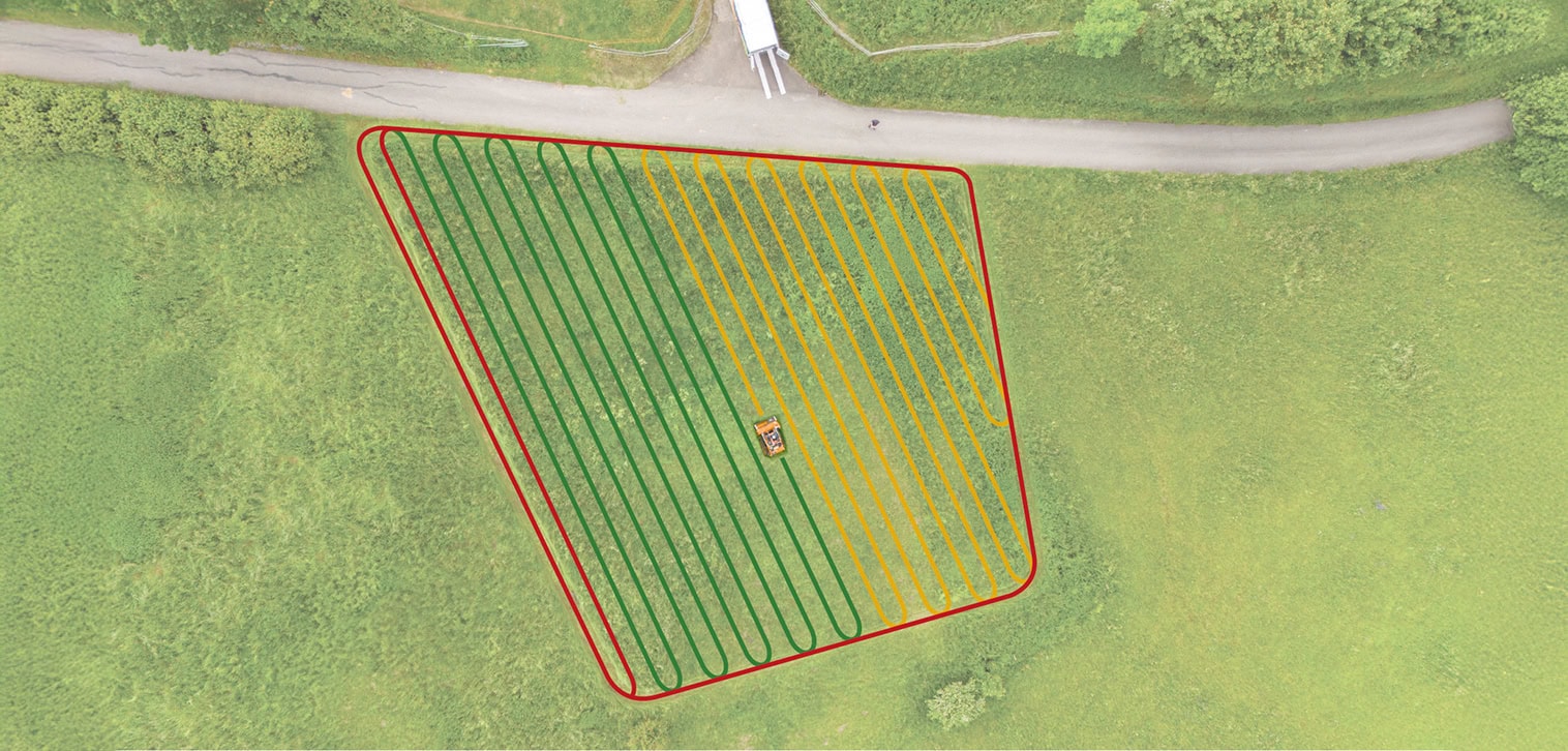 ένας στόλος τριών AS 940 Sherpa 4WD RC μηχανές που κουρεύουν αυτόνομα σε μια ορισμένη περιοχή – ελεγχόμενες και παρακολουθούμενες μέσω του λογισμικού πύργου ελέγχου helyOS®.